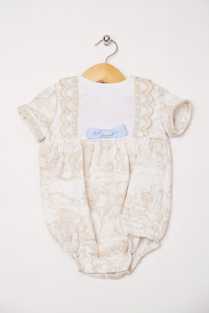 Elegante mameluco estampado para niño con alforzas en el pecho.