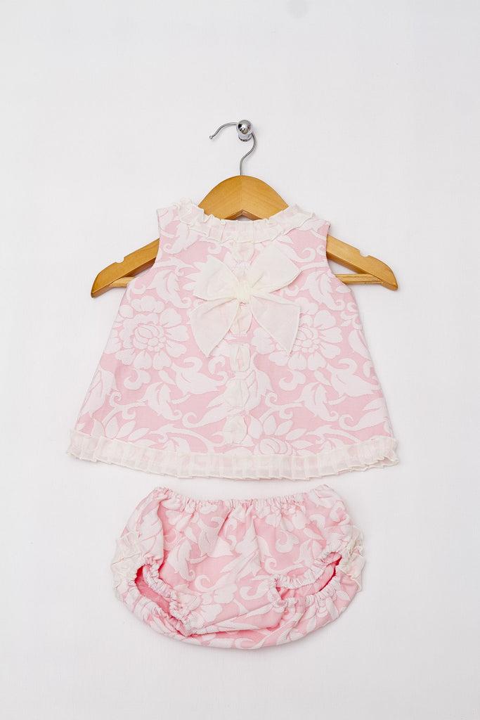 Elegante conjunto para bebé, sisado con corte A, tela de algodón grueso texturizado (brocado).