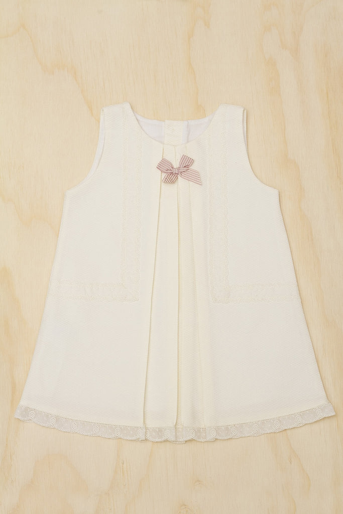 Faldón con plisado frontal con un moño. Detalles en encaje en frente y abajo.