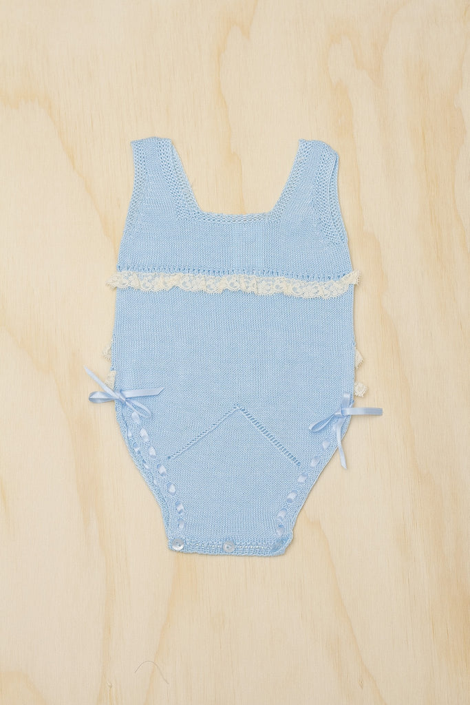 Mameluco sisado y de entrepierna, de crushe. Detalle de encaje al frente, y pasaliston con lazo en la entrepierna.